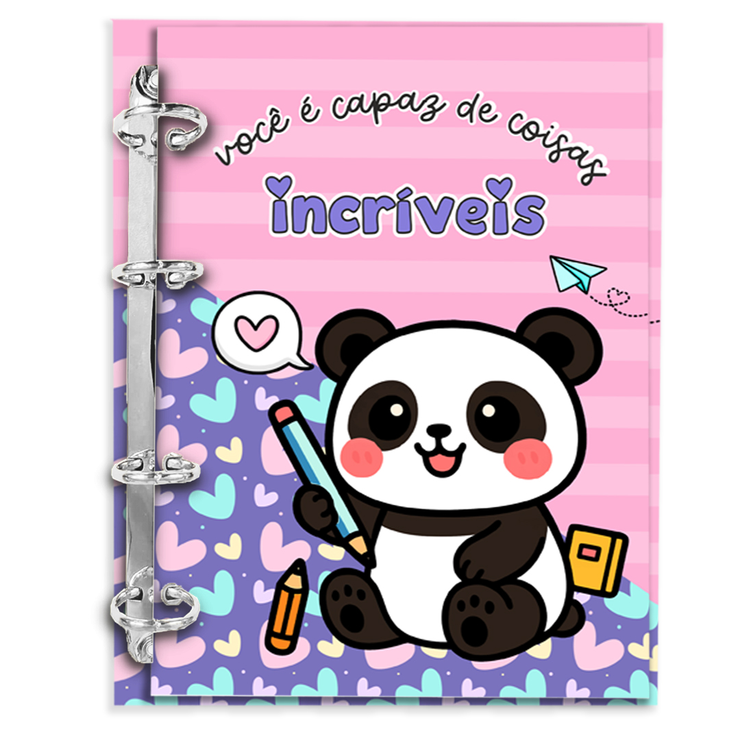 Fichário Pandinha– Colegial 80 folhas | Miolo 90g (pautado/quad/pontilhado)